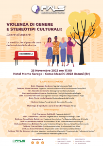 Si terrà oggi, venerdì 25 novembre alle ore 17, presso l’Hotel Monte Sarago di Ostuni l’iniziativa promossa e organizzata dal Coordinamento Donne di FIALS dal tema “Violenza di genere e stereotipi culturali: libere di essere -La Sanità che si prende cura della donna “. È un evento che vuole distinguersi dalle tante iniziative che ogni anno nel mese di novembre si tengono in occasione della giornata per la lotta alla violenza di genere.