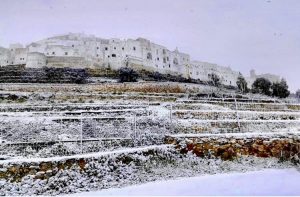 Come da previsioni, la neve, che da ieri è arrivata a cadere sulla Puglia, ha imbiancato anche Ostuni.
