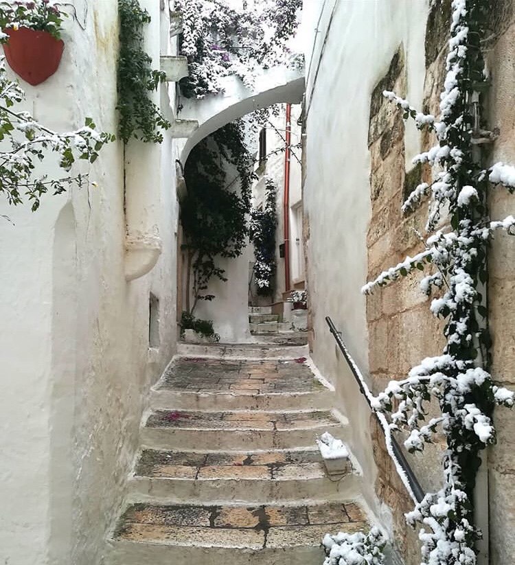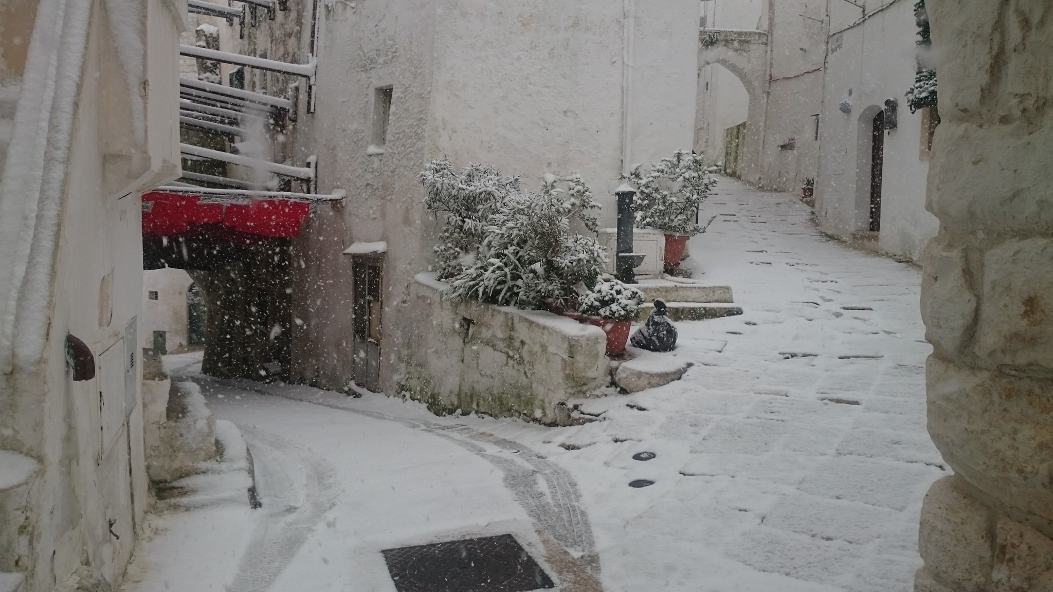 Come da previsioni, la neve, che da ieri è arrivata a cadere sulla Puglia, ha imbiancato anche Ostuni.