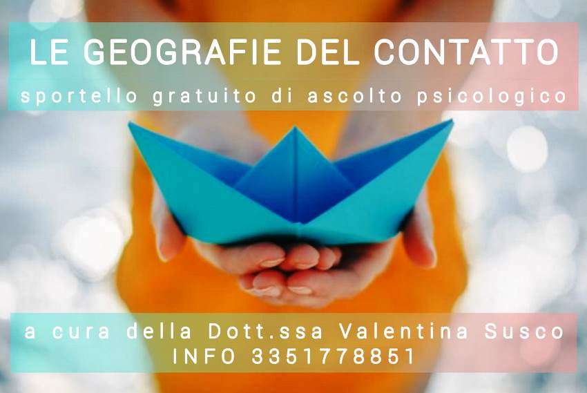 Il servizio di ascolto psicologico, a cura della dott.ssa Valentina Susco, è attivo ogni giorno dalle ore 16 alle ore 19. Gli incontri potranno svolgersi in presenza, nel rispetto delle distanze di sicurezza o online, mediante l’utilizzo di piattaforme (Skype, Zoom etc).