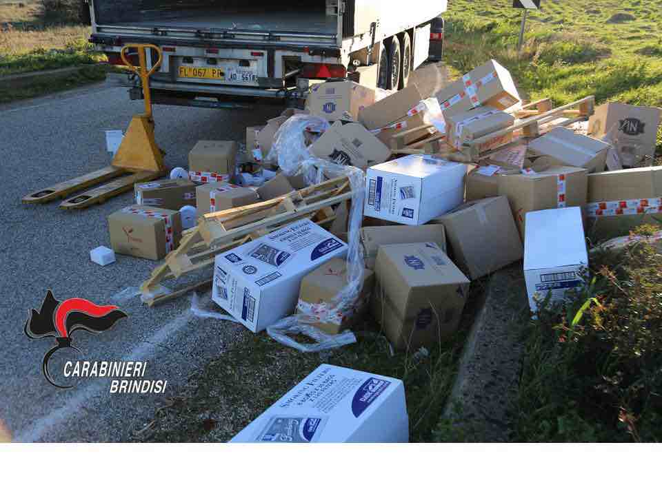 Assalto sulla S.S. 379 a un Tir che trasportava tabacchi: rubate 7 tonnellate di sigarette
