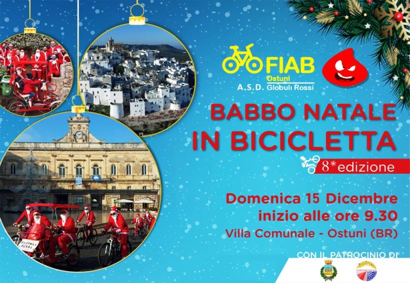 Vestiti da Babbo Natale, i ciclisti porteranno in dono dei regali ai bambini ospiti di un istituto per minori di Ostuni e distribuiranno caramelle a grandi e piccini che incontreremo lungo percorso.
