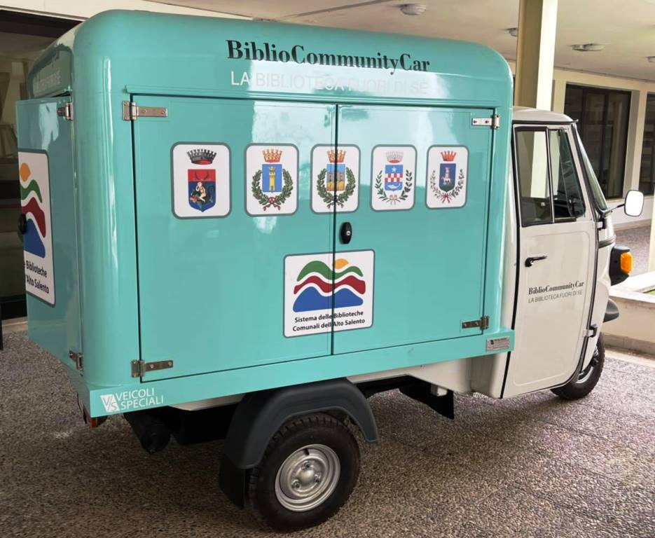 È arrivata a Ostuni la Biblio Community Car, una piccola “Ape” a cui si affida un grande compito: quello di consegnare libri a domicilio. Il simpatico mezzo a tre ruote porterà in giro per il territorio ostunese, anche nelle marine e nelle contrade, i libri della Biblioteca comunale “F. Trinchera”. L’innovativo progetto è stato premiato dalla Regione Puglia nell’ambito delle attività previste dalla Community Library, inziativa volta al miglioramento della fruibilità della rete bibliotecaria composta dal comune di Ostuni, capofila del progetto, e dai comuni di Ceglie Messapica, Carovigno, San Michele Salentino e San Vito dei Normanni.