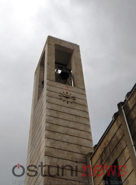 Il supporto economico e spirituale dei tanti fedeli infatti, oggi come nel 1956, quando la chiesa fu fondata, si è rivelato fondamentale per la vita stessa di una delle chiese più frequentate e attive della Città bianca. In verità, la costruzione del campanile non era prevista nel progetto originario, ma fu fortemente voluta da Mons. Giovanni Livrani per commemorare i caduti della seconda guerra mondiale. Il campanile fu così costruito grazie a una nuova raccolta fondi a cui partecipò tutta la cittadinanza ostunese, che permise di realizzare una struttura alta 29 metri e mezzo, in cui venivano collocate tre campane del peso complessivo di oltre sette quintali e mezzo, le stesse che hanno ripreso a suonare per gli ostunesi di ieri, di oggi e di domani.