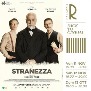 Uno strano trio composto da Servillo, Ficarra e Picone investe la sala cinema di Palazzo Roma di Ostuni con “La Stranezza”, il nuovo film in programmazione da venerdì 11 a domenica 13 novembre alle ore 18:00 e 20:00.