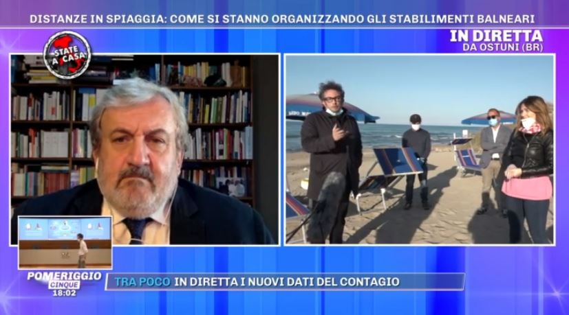 In collegamento con Pomeriggio Cinque, anche il governatore della regione Puglia Michele Emiliano, che dichiara: «Stiamo cercando, sui nostri 920 Km di costa, di ospitare lo stesso numero di persone che abbiamo sempre accolto. Non amando il turismo di massa, ma preferendo un modello legato al turismo lento ed esperienziale – spiega il governatore Emiliano – sono convinto che non si riscontreranno problemi a offrire un servizio adeguato alle nuove misure da seguire per la sicurezza di operatori e bagnanti. Immaginiamo una grande “sorveglianza civile” per ospitare tutti gli amanti del nostro mare, perciò invito chiunque abbia intenzione di trascorrere in Puglia le proprie vacanze a prenotare senza problemi. Il mare è uno dei luoghi in cui per definizione i rischi si abbattono, pertanto vigeranno regole adeguate alla gestione di uno dei patrimoni naturali più suggestivi d’Italia, di cui la natura ci ha fatto dono».