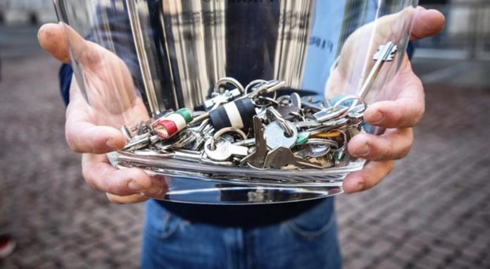 La voce di titolari e gestori di bar, ristoranti ed esercizi pubblici, stremati dalla crisi economica conseguente all’emergenza pandemica in corso, si fa sentire anche a Ostuni. Si terrà nella mattinata di oggi la consegna simbolica al sindaco Guglielmo Cavallo di tante chiavi, corrispondenti al numero delle attività commerciali che aderiscono all’iniziativa. Una delegazione composta da alcuni imprenditori ostunesi raggiungerà alle ore 9 la sede municipale, dove saranno depositate le chiavi.