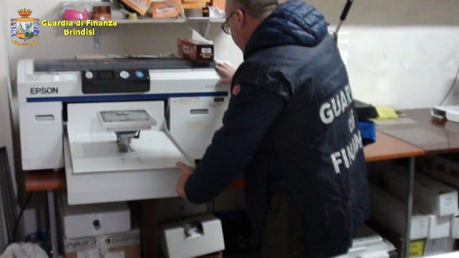 Gli agenti della Guardia di Finanza hanno scoperto a Francavilla Fontana un laboratorio serigrafico dedito alla contraffazione di griffe prestigiose. I militari delle Fiamme Gialle hanno sorpreso all’interno del laboratorio il titolare impegnato nella vendita del materiale contraffatto a un uomo che lo stava acquistando.