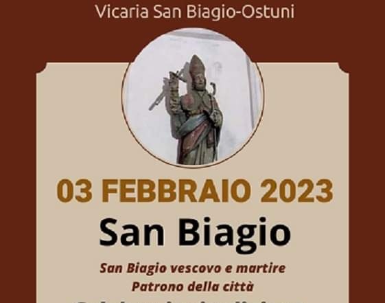 Oggi venerdì 3 febbraio 2023 si celebra la festa di San Biagio, Vescovo e martire e Patrono della Città di Ostuni.