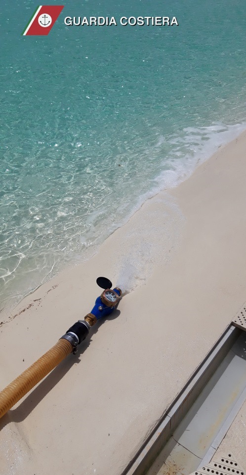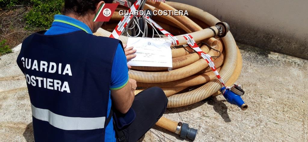 In seguito a un sopralluogo nel villaggio turistico, gli agenti del Nucleo operativo della Polizia ambientale della Capitaneria di Porto hanno individuato un tubo in Pvc lungo 30 metri, in parte interrato lungo il demanio marittimo e in parte disteso sulla scogliera, collegato a una pompa elettrica che portava l’acqua marina alla piscina del noto villaggio turistico.