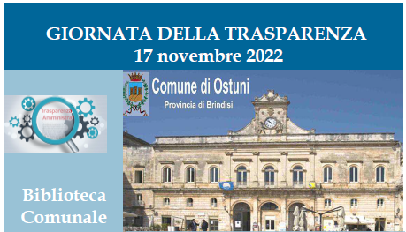 Il Comune di Ostuni intende promuovere la partecipazione attiva degli studenti alla “Giornata della Trasparenza 2022” con l’intento di sensibilizzare i giovani al tema della legalità e delle politiche anticorruzione. Alla giornata, infatti, parteciperanno gli studenti delle scuole secondarie di II grado che, in fase di dibattito, offriranno il proprio punto di vista sull’argomento soffermandosi su considerazioni relative agli interventi dei vari relatori.