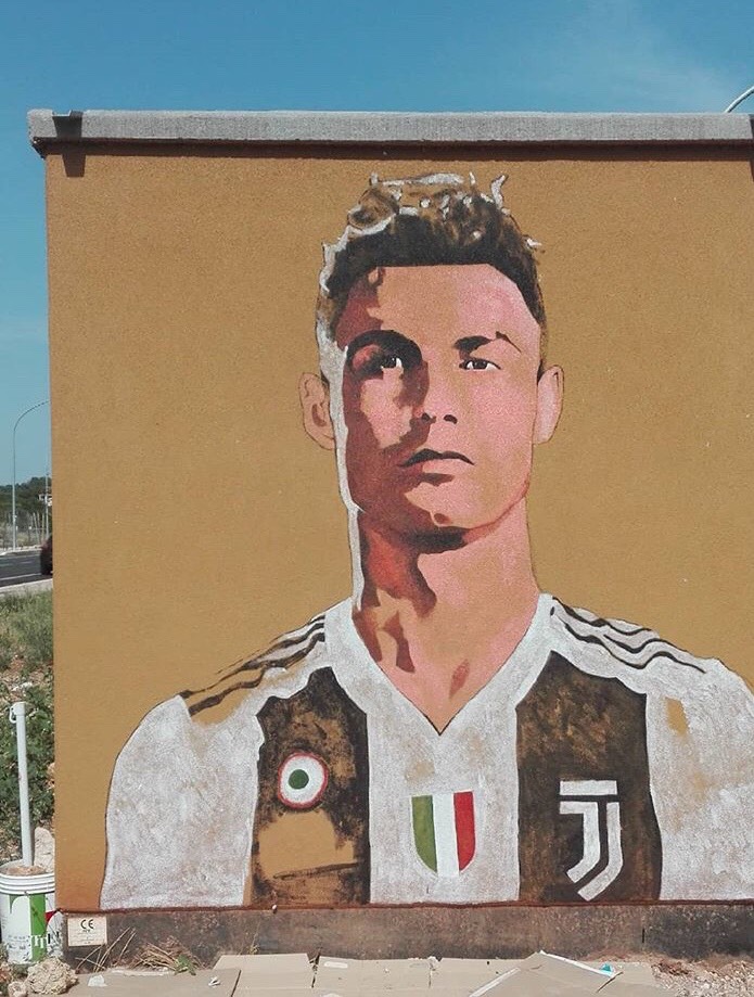 L’immagine ha fatto la sua comparsa sul muro di un edificio nei pressi di Piazza Padre Pio,poco lontano dalla zona 167 bis, e ritrae il neo acquisto del club bianconero. L’autore del murales è lo street artist Paolo Carriere, nome d’arte ‘Zampa di giaguaro’, che ha voluto così omaggiare il calciatore portoghese.