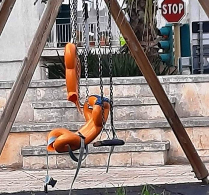 L’altalena per bambini disabili della villetta “Padre Pio” è stata distrutta dai vandali. Acquistata grazie a una raccolta fondi istituita dalla Onlus “Il ricordo di un sorriso” e donata alla città con una cerimonia pubblica nella primavera del 2018, l’altalena è stata danneggiata irreparabilmente durante l’ennesimo atto vandalico verificatosi a Ostuni.