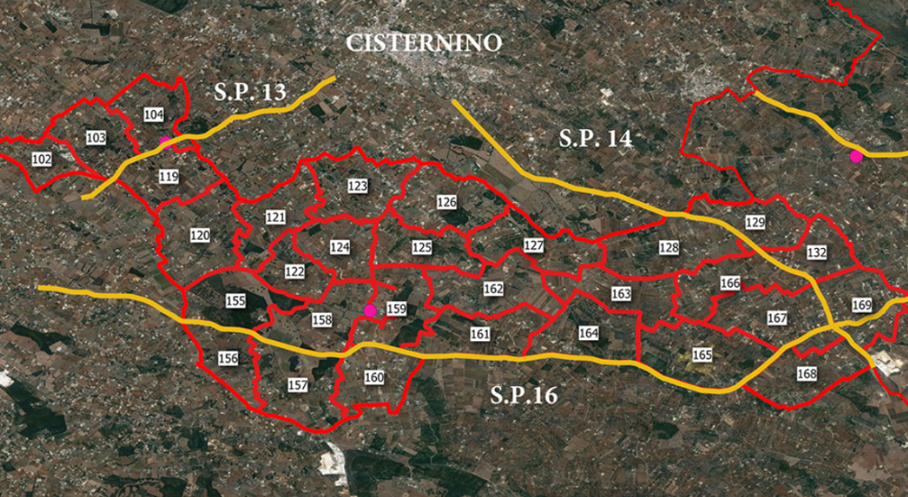 Le prime due isole sono destinate alle sole utenze che popolano le contrade presenti a sud-ovest della strada Provinciale n. 14 (Cisternino Incrocio di Chiobbica) e le utenze registrate al ruolo Tari (fig. 1 utenze le cui abitazione ricadono nei fogli catastali illustrati in figura) potranno conferire 24 ore su 24 i propri rifiuti, previa identificazione attraverso tessera sanitaria, tessera dedicata e qrcode generato attraverso smartphone, secondo le indicazioni riportate al sito web https://ostuni.wasteye.com/city/ostuni#.