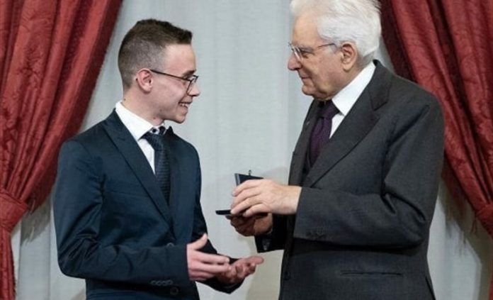 Ieri, il diciottenne studente di Fragagnano, in provincia di Taranto, ha ricevuto a Roma l’attestato d’onore direttamente dalle mani del presidente della Repubblica, insieme ad altri ventotto giovani talenti italiani, che si sono distinti come “modelli positivi di cittadinanza e costruttori di comunità”.