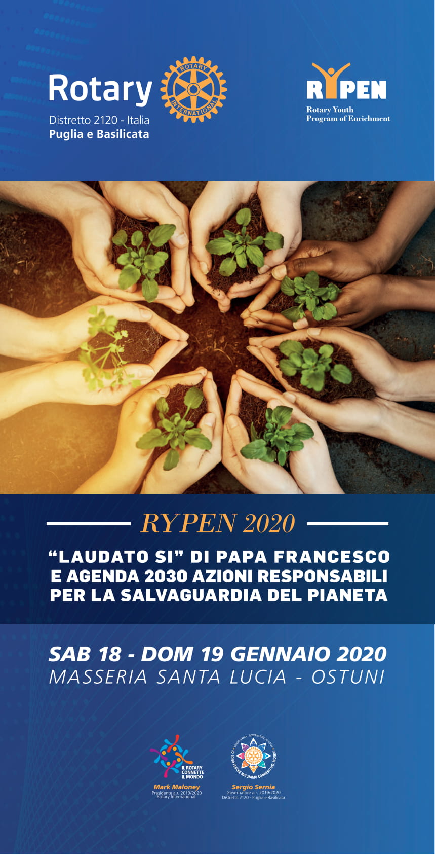 Il tema dell’incontro è l’enciclica “Laudato sii” di Papa Francesco e l’Agenda 2030 azioni responsabili per la salvaguardia del pianeta. La manifestazione si apre oggi alle ore 17.30 con i saluti della Presidente del Rotary Club Ostuni Sandra Tanzarella, del responsabile distrettuale dell’Interact Salvatore Muci e del Rotaract, Alessandra Siciliani. I due laboratori “Comunicare il sociale” di sabato e domenica saranno tenuti dal giornalista Carlo Sacco.