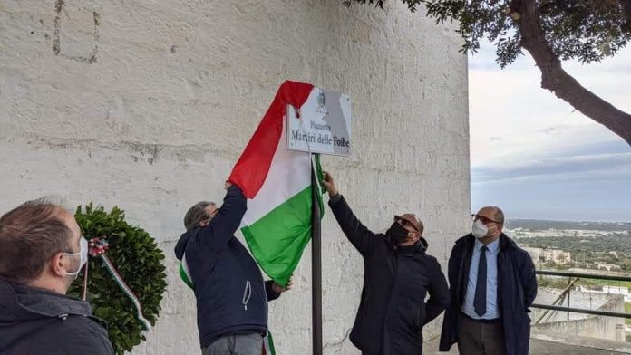 Nel Giorno del Ricordo, a un anno esatto dalla richiesta avanzata dal comitato cittadino “Ricordo vittime delle Foibe”, il Comune di Ostuni ha inaugurato con una cerimonia pubblica la piazzetta panoramica intitolata ai tanti italiani che persero la vita durante il feroce eccidio. La cerimonia si è tenuta nella mattinata di ieri, martedì 10 febbraio, giorno in cui ricorre la solennità civile nazionale, alla presenza del sindaco di Ostuni Guglielmo Cavallo, del presidente del consiglio comunale Giovanni Zaccaria e del presidente del comitato cittadino Antonio D’Amico.