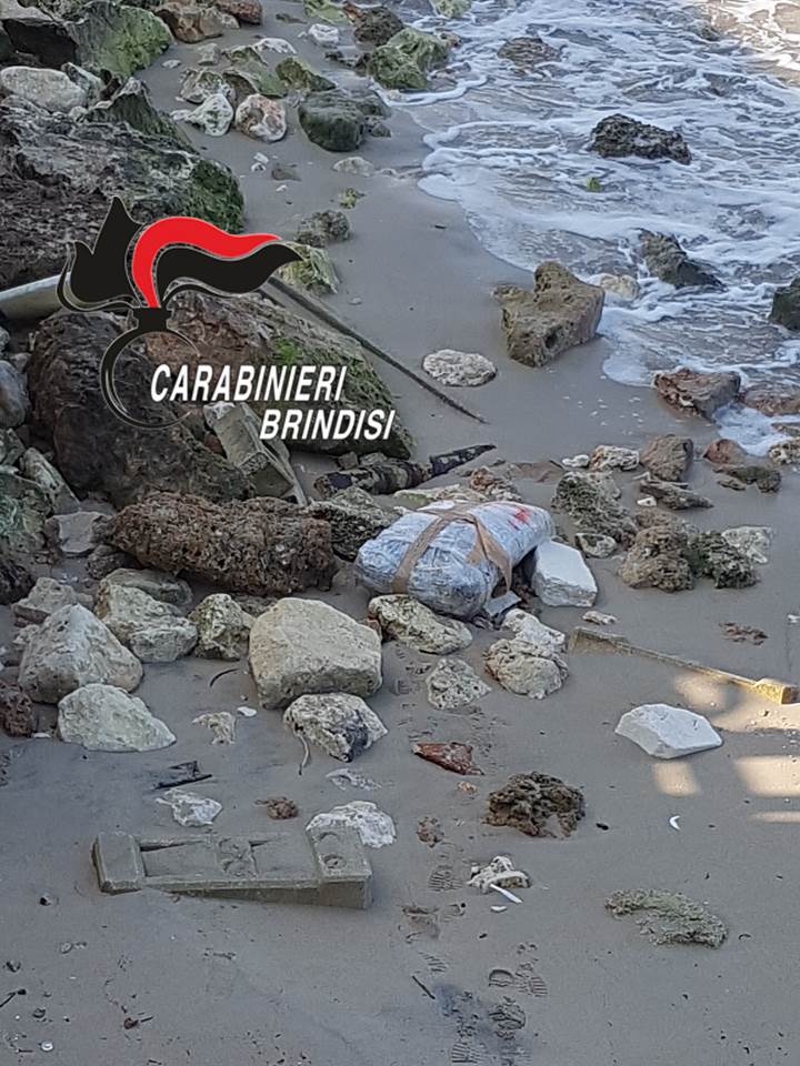 Con molta probabilità l’involucro in cellophane, perfettamente sigillato, contenente la sostanza stupefacente è stato perso da uno scafo durante l’attraversamento in mare e portato sulla costa brindisina dalle mareggiate violente dei giorni scorsi.