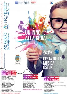 La Festa della Musica aprirà i battenti giovedì 21 giugno presso la Villa Comunale “Sandro Pertini”, con una serata all’insegna della musica dal vivo, presentata da Floriana Rignanese, attrice cinematografica e soubrette televisiva, nel corso della quale esibiranno in tutto quattordici artisti, su cui spicca il nome del noto fisarmonicista ostunese, Vince Abbracciante. Sarà poi il borgo costiero di Villanova ad accogliere, venerdì 22 giugno, la seconda serata della Festa della Musica messa a punto dalle due ProLoco ostunesi, mentre la lunga notte tra il 23 e 24 giugno, definita da secoli come la “notte delle streghe”, sarà presentata dal musicista e interprete Bruno Conte e si svolgerà lungo Viale Oronzo Quaranta e, come da tradizione, sarà animata dai riti e cerimoniali pagani, tipici della “Notte di San Giovanni”.