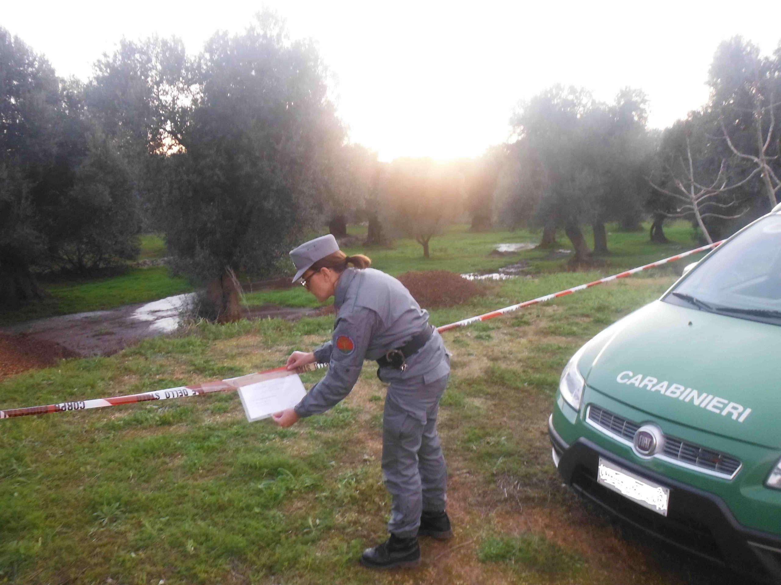 I Carabinieri forestali della Stazione di Ostuni hanno posto i sigilli ad un’area di circa cinquemila metri quadrati attigua a un frantoio oleario a Carovigno, in contrada Parco Piccolo.