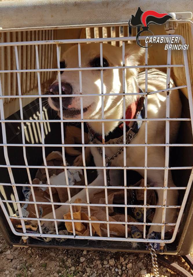 I militari dell’Arma, nel corso di un controllo perlustrativo nelle campagne di Ceglie, avevano notato un’automobile abbandonata in un terreno. All’interno della vettura, che era chiusa a chiave, i carabinieri si sono accorti della presenza di sei cani, che abbaiavano insistentemente: un cane di taglia media, che era libero, e altri cinque cani di dimensioni più piccole, che si trovavano all’interno di trasportini.