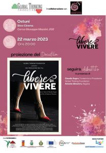 La Global Thinking Foundation in collaborazione con il centro antiviolenza “Insieme si può” di Ostuni presentano questa sera alle ore 20 presso lo Slow Cinema di Ostuni il docufilm “Libere di… Vivere”.