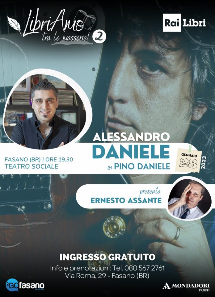 Stasera, sabato 28 gennaio al Teatro Sociale di Fasano alle 18.30 ultimo appuntamento della rassegna LibriAmo…tra le masserie, organizzata dal Mondadori Point e da Laura de Mola, con Alessandro Daniele figlio del grande Pino Daniele e autore di “Pino Daniele. Tutto quello che mi ha dato emozione viene alla luce”, edito Rai Libri.