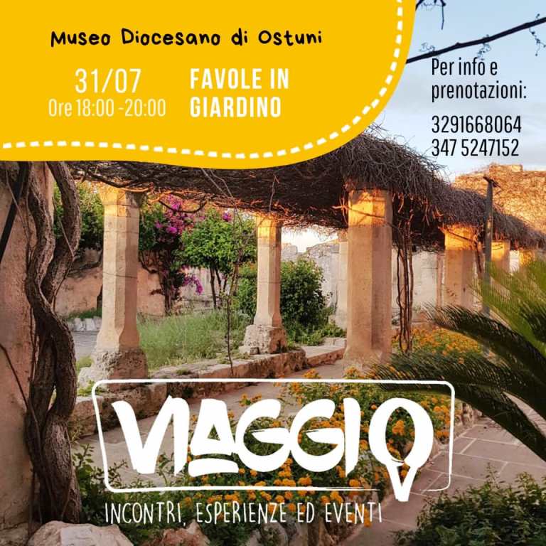 Torna a grande richiesta nel Giardino dei Vescovi del Museo Diocesano di Ostuni, l’evento “Favole in Giardino”. Il primo appuntamento con i “Racconti nella Città Bianca” è per oggi, sabato 31 luglio, alle ore 18. L’evento, ideato per i più piccoli ma apprezzato anche dai più grandi, condurrà gli spettatori nel magico mondo dei racconti popolari della tradizione locale, avvalendosi di metodi di narrazione antichi ma sempre appassionanti.