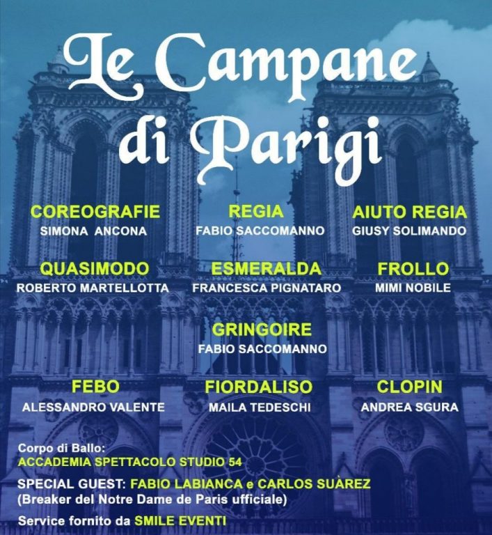 Le campane di Parigi” è uno spettacolo che sarà presentato nelle serate di oggi e domani, 10 e 11 agosto, con ingresso alle ore 20.15 e inizio alle ore 21, presso l’Anfiteatro Kios a Villanova di Ostuni. Prende spunto dalla meravigliosa opera di Victor Hugo, conosciuta in tutto il mondo, “Notredame de Paris” ed è il frutto del lavoro di 20 giovani artisti, ognuno con età diversa , formazione vocale e genere differente l’uno dall’altro. La combinazione di musica, danza, parola, scenografia e luci darà vita ad una macchina spettacolare che catturerà il pubblico dall’istante in cui il sipario si aprirà fino all’ultima nota.