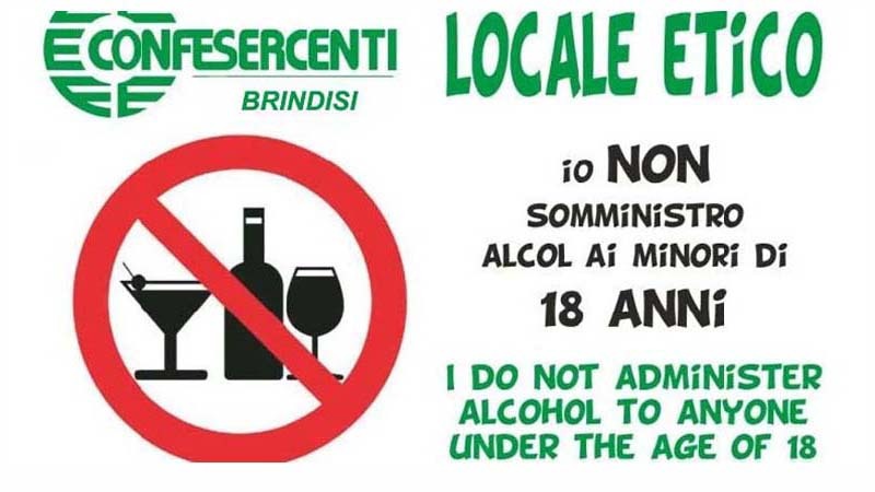Al via la campagna di sensibilizzazione “Io non somministro alcol ai minori di 18 anni”, ideata da Confesercenti Brindisi che promuove il rispetto del divieto della somministrazione di alcolici ai minorenni da parte dei titolari dei locali della movida.