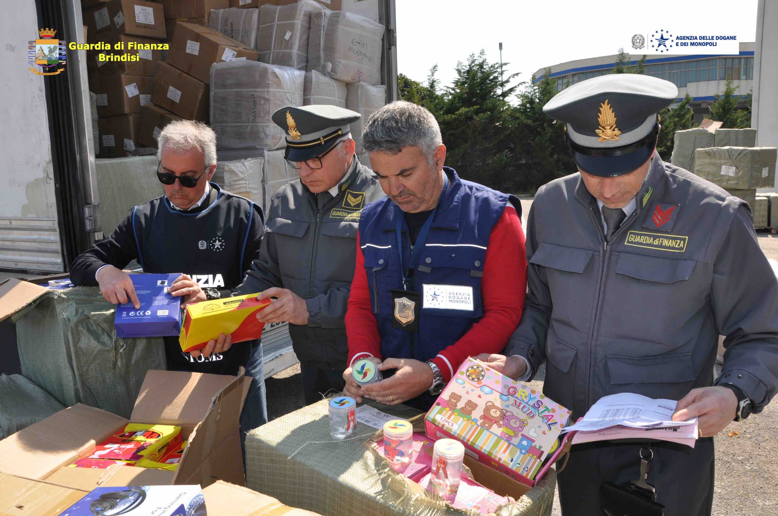 I militari della Guardia di Finanza di Brindisi, insieme ai funzionari dell’Agenzia delle Dogane, hanno rinvenuto a bordo di un camion proveniente dalla Grecia 114.938 prodotti “made in China” con marchio contraffatto e con falsa certificazione CE.
