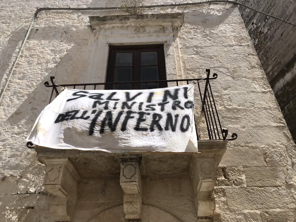 Intanto da ieri, anche nella Città Bianca, sono spuntati due striscioni di protesta, seguendo la forma di constestazione pacifica adottata negli ultimi tempi da chi dissente dalle politiche messe in atto dal ministro dell’Interno.