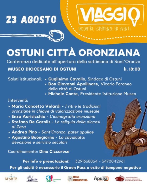 Lunedì 23 agosto 2021, nel giorno di apertura della settimana dedicata alle festività di Sant’Oronzo, il Museo Diocesano di Ostuni sarà la sede di “Ostuni Città Oronziana“, primo incontro di studio ed approfondimento sulla figura del Santo e sulle tradizioni a lui legate.