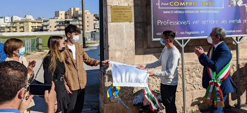 Incisione che ha di fatto battezzato ufficialmente quell’intitolazione già attribuita che, dal 9 giugno di due anni fa, accompagna ufficialmente il campo di calcio di Ostuni. L’emergenza coronavirus ha impedito di organizzare anche una manifestazione sportiva, come accaduto un anno fa, quando l’Ostuni 1945 con il supporto della sede ostunese del Centro Sportivo Italiano e del Comune di Ostuni, organizzarono il primo “Memorial Nino Laveneziana”.