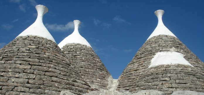 Oltre ai grandi monumenti, l’architettura pugliese si esprime nelle sue tipiche costruzioni rurali, testimonianza della vita contadina e della gestione del territorio. Le masserie sono antiche fattorie fortificate, nate tra il XV e il XVIII secolo, che fungevano da centri produttivi e da rifugi. Oggi, molte sono state restaurate in strutture ricettive, conservando il fascino della pietra a vista e delle corti interne.