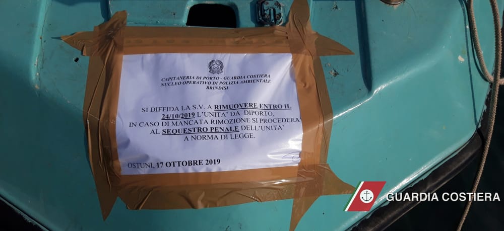I militari della Sezione Polizia Marittima Ambiente e Difesa costiera della Capitaneria di Porto di Brindisi, congiuntamente al personale in forza alla Delegazione di Spiaggia di Villanova, hanno notificato ai proprietari l’immediata rimozione delle unità ormeggiate prive di titolo autorizzativo.