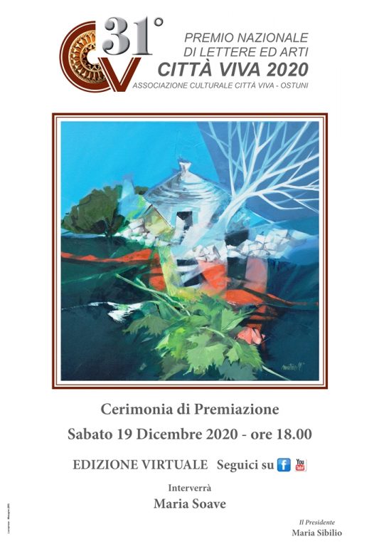 Per premiare i tanti autori di talento che anche quest’anno in questo contesto particolare si sono messi in gioco, l’Associazione culturale Città Viva conferma il suo impegno e organizza in un’insolita forma virtuale la cerimonia di premiazione della 31a edizione del Premio Nazionale di Lettere ed Arti “Città Viva” 2020, che da decenni dà lustro alla Città Bianca.