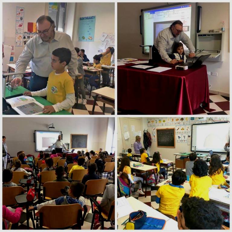Accanto a questa straordinaria attività – continua la dott.ssa Mingolla – una serie nutrita di laboratori completa il percorso didattico. Abbiamo i laboratori tecnologico – multimediale e tecnologico – scientifico, il laboratorio psicomotorio che si svolge nella nostra splendida palestra, e diversi progetti di circolo attivi, tra cui il progetto Continuità, dedicato agli alunni delle quinte classi e di cinque anni della scuola dell’infanzia; il progetto “Emozioni in gioco”, rivolto agli alunni diversamente abili; il progetto SBAM – salute, benessere, alimentazione e movimento a scuola; il progetto “Sport di classe”, che coinvolge gli alunni delle quarte e delle quinte classi. Inoltre la scuola aderisce a iniziative locali e nazionali come “La settimana dei Bambini del Mediterraneo”, il progetto “Io leggo perché” e la postazione “Il libro parlato”.