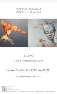 Sarà inaugurata sabato 9 settembre alle ore 19,00 e sarà aperta fino al 30 settembre 2023 presso Galleria Orizzonti Arte Contemporanea in Piazzetta Cattedrale ad Ostuni la mostra “Silenzi”, bi personale al femminile di Rossana Borzelli e Vania Elettra Tam.