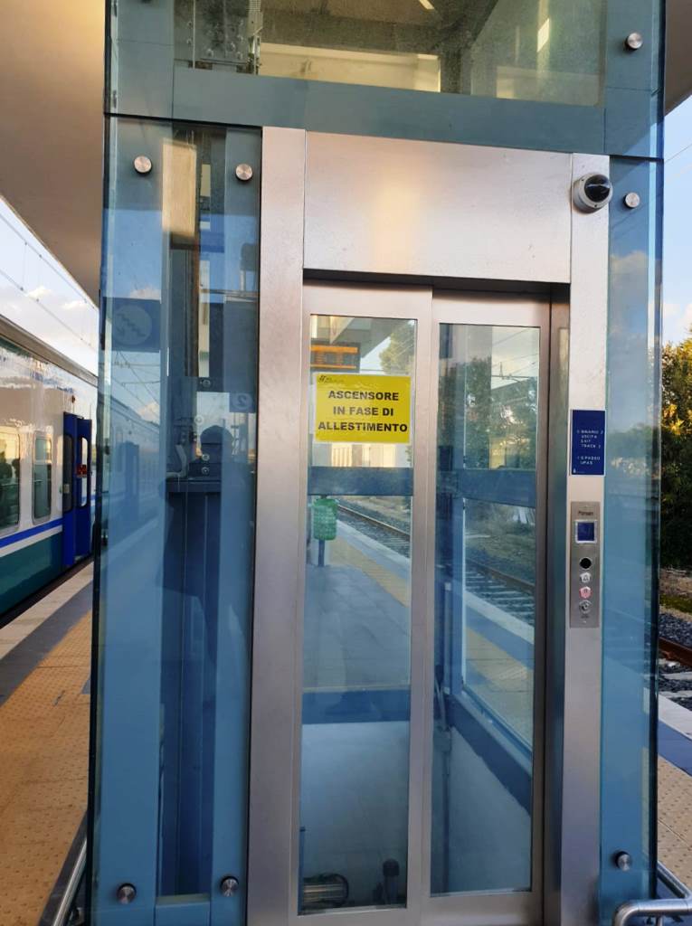Da quando gli ascensori sono stati installati, quindi da circa un anno, sulle porte d’ingresso resta affisso il cartello con la dicitura “ascensore in fase di allestimento”. Iniziati con molta calma a maggio del 2018, i lavori di riqualificazione della stazione di Ostuni hanno provocato non pochi disagi ai turisti in arrivo durante la stagione estiva. L’incredulità e lo spaesamento dei tanti visitatori che hanno affollato lo scalo ferroviario ostunese trasformato in un cantiere l’estate scorsa, si ritrova tutt’oggi in coloro che puntualmente, come l’anziano signore disabile, devono – più o meno a fatica – fare fronte a un gravoso disservizio.