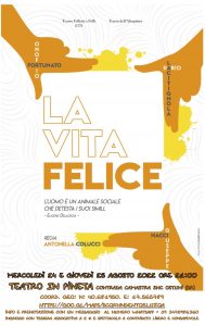 Mercoledì 24 e Giovedì 25 ore 21:00 presso il Teatro in Pineta, in contrada Camastra di Ostuni, ultimi due appuntamenti della rassegna “Giardini Animati” 8˚edizione estate 2022 organizzata dall’associazione Teatro Folletti e Folli ETS che presenta: “La Vita Felice”.