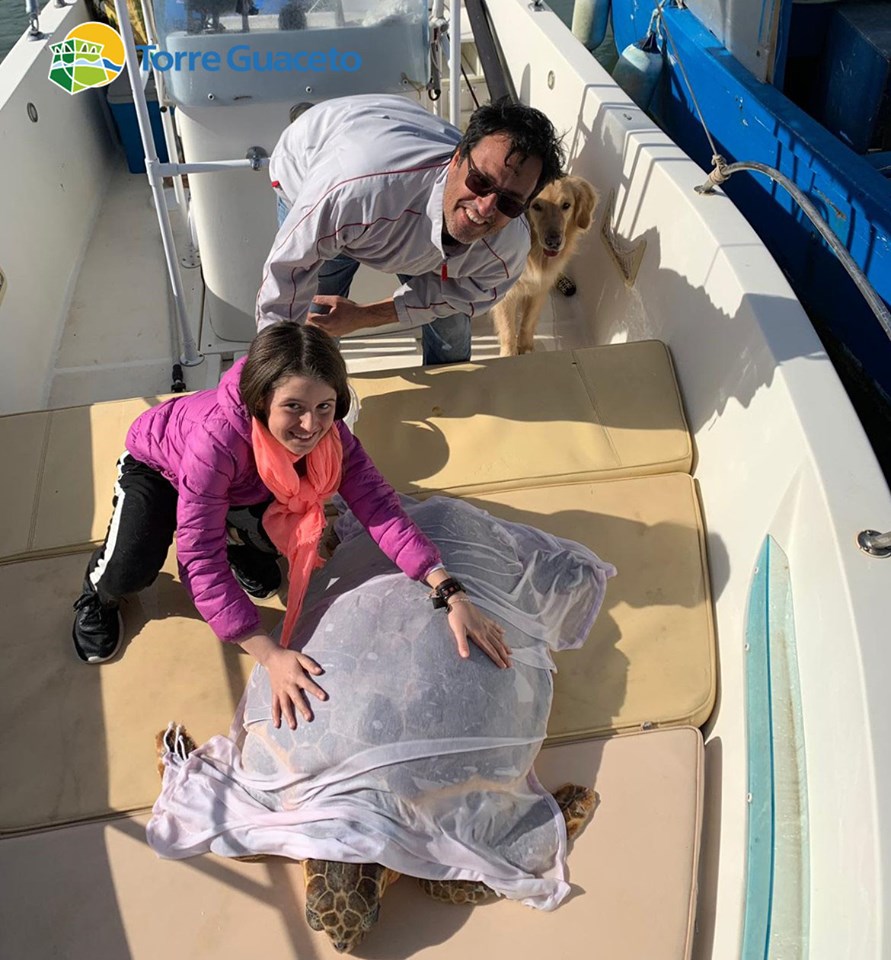 La bimba, ai primi di marzo, faceva un giro in barca insieme alla sua famiglia- la madre Alessia e il padre Aldo- quando si è accorta che in acqua era comparsa una grande macchia scura, che a uno sguardo più attento è risultata essere una tartaruga in difficoltà.