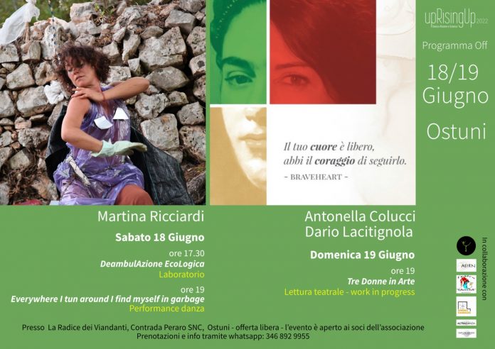 Stasera, domenica 19 giugno, alle ore 19, presso La Radice dei Viandanti, Residenza di Danze Performative, ad Ostuni, andrà in scena “Tre Donne in Arte”, con Antonella Colucci, regia Dario Lacitignola. Lo spettacolo teatrale è prodotto da Teatro Folletti e Folli e Teatro dell’Altopiano.