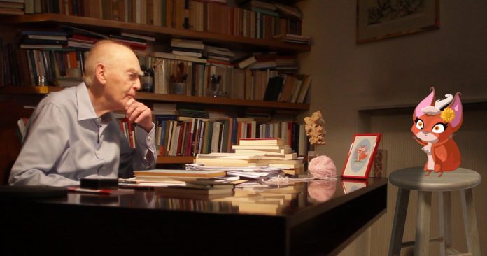 «Aldo, cosa significa innamorarsi? Cos’è la felicità?». Questa è una delle tante domande che la volpe Sophia pone ad Aldo Masullo che, alla sua veneranda età, si gode il divertimento di dialogare con un cartone animato. Arrampicata su uno sgabello, nel suo studio, la volpe Sophia, generata dalla fantasia di Andrea Lucisano e della onlus “La danza delle farfalle”, lo interroga su vari quesiti, con l’ingenuità e la spontaneità di un bambino.