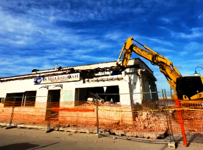 Giornata storica per Villanova, dove sono iniziate ufficialmente le operazioni di demolizione dell’immobile abusivo noto come ex ristorante La Vela, da anni in stato di degrado e costruito su area demaniale marittima. Un intervento atteso da lungo tempo, che apre la strada alla rinascita del porto e alla riqualificazione dell’intero litorale ostunese.